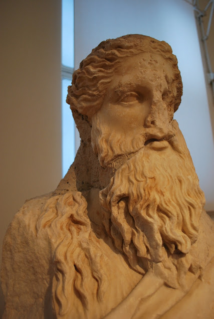 Visiting the National Archeological Museum in Athens is quite an experience. Although I knew that most of the Roman statues I love, are copies of Greek originals, it still gives a shock being confronted with the Greek original itself. This specific statue of Dionysos was made in the 1st century AD, as a copy of the original made by Praxiteles, about 325-320 BC. It was found in the Theater of Dionysos in Athens at the slope of the Acropolis. It belongs to the so called 'Dionysos-Sardanapalus' type.
